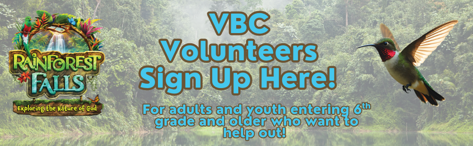 Thank you for volunteering for Vacation Bible Camp 2026! In our NEW WEEK! July 27-31, 2026